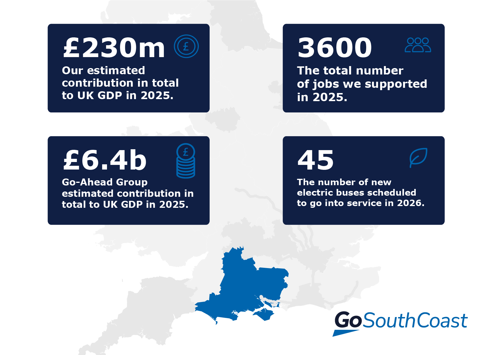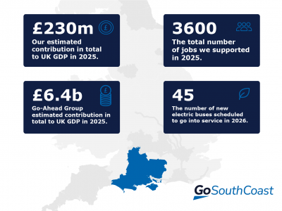 We’re so proud to be recognised in new report from Oxford Economics for the significant economic impact and social value we contribute to the UK. The report shows that Go South Coast contributed £230m to the UK economy in 2025, supporting 3600 jobs across Bournemouth, Southampton, Salisbury and Swindon, as well as the Isle of Wight and rural parts of Dorset, Hampshire and Wiltshire.